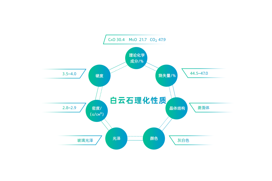 白云石兼具物理穩定性與化學活性,其核心特性包括: